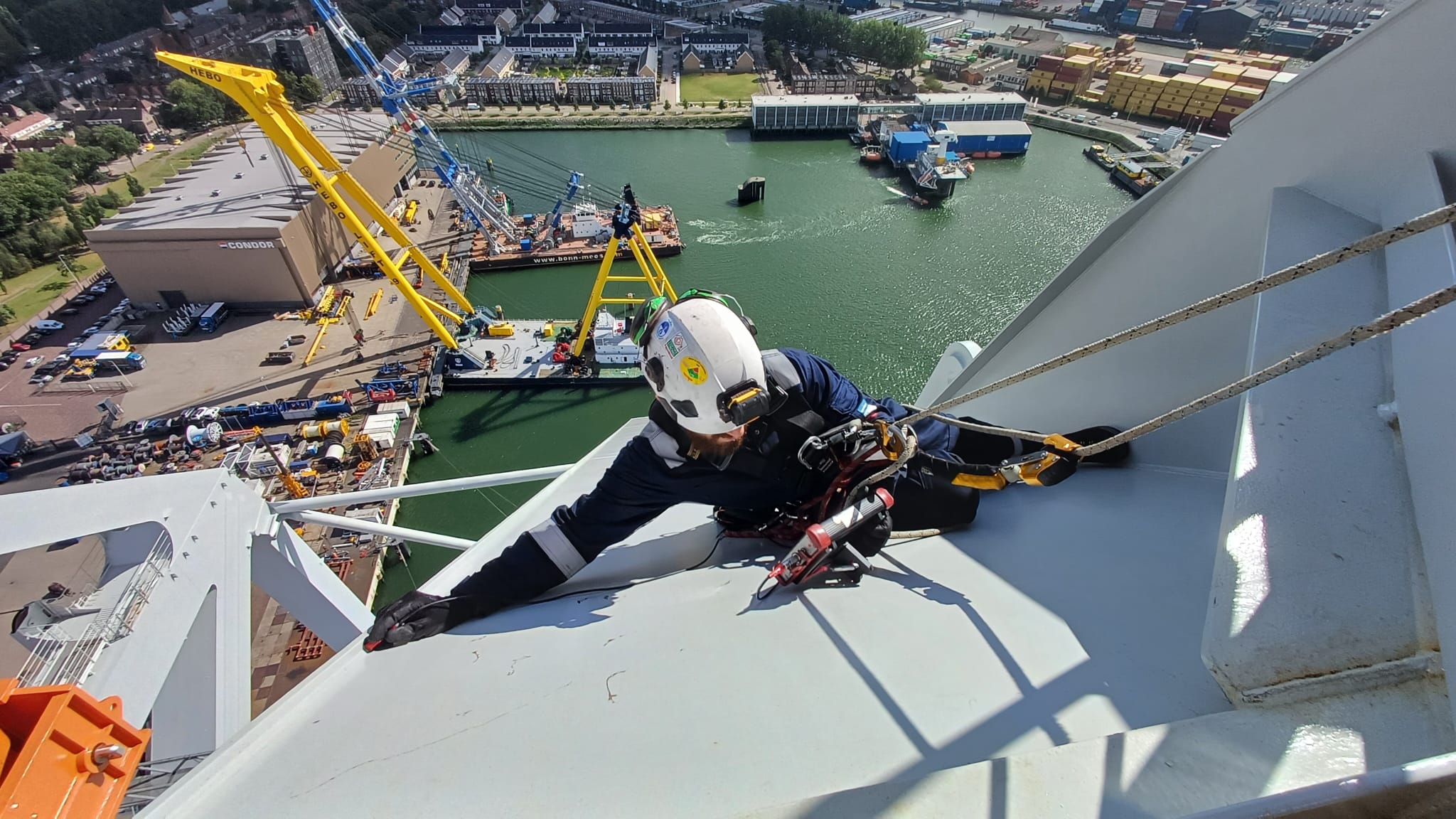 “Wist je dat rope access werkzaamheden al veel eerder op schepen gedaan werden dan in de industrie?”, begint Den Neijsel met een kleine geschiedenisles. “Als gespecialiseerd IRATA rope access bedrijf worden we dan ook veel door scheepseigenaren en rederijen gevraagd. We brengen anderen op hoogte en in diepte, voeren ook zelf technische werkzaamheden op moeilijk bereikbare plaatsen uit en bieden rescue standby, net als in de industrie.”